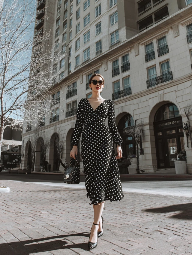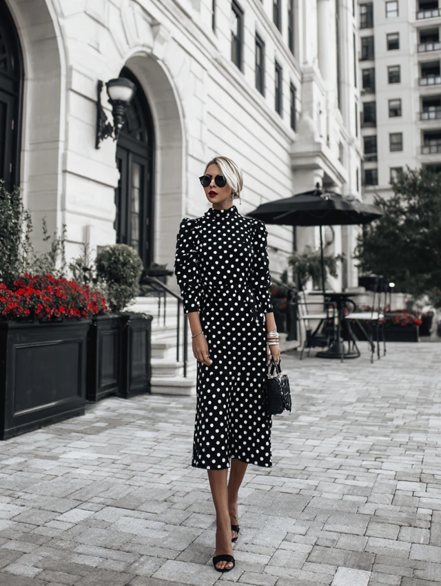 1. Black and White Polka Dot Midi Dress