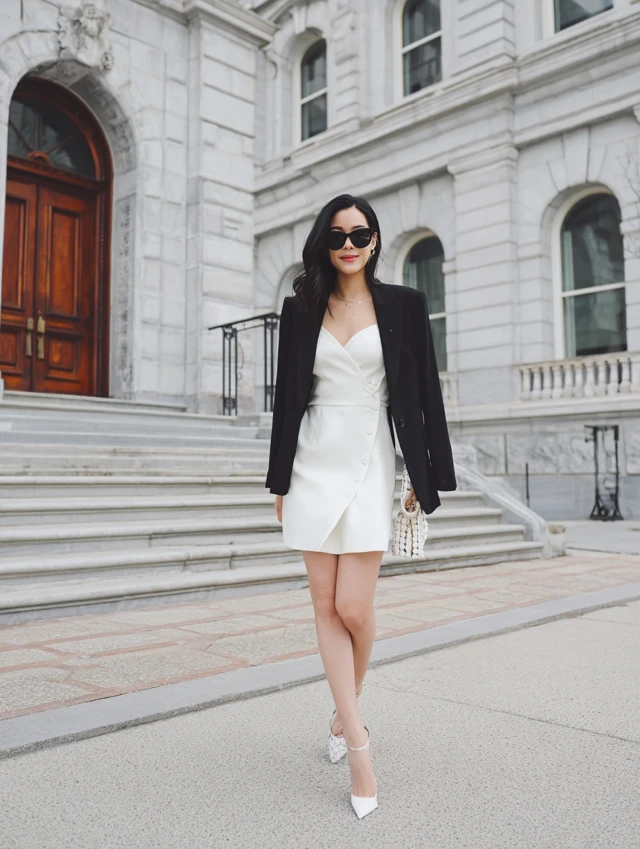 4. White Dress with Black Blazer