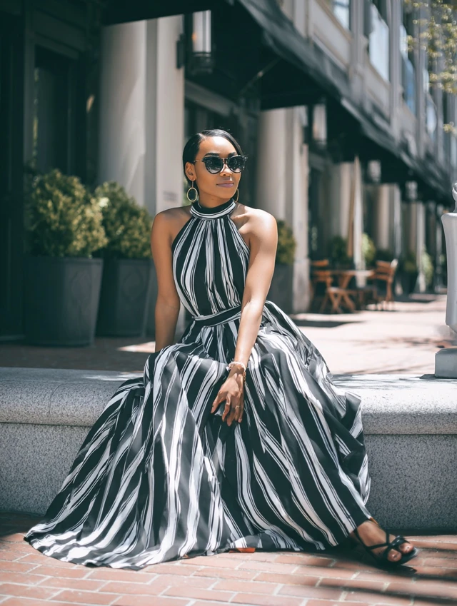 2. Black and White Striped Maxi Dress