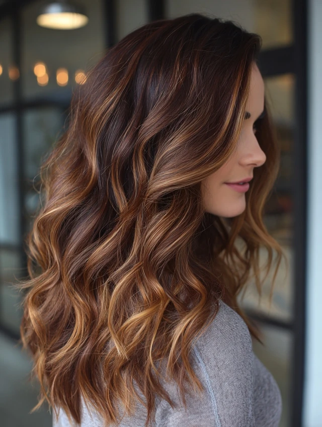 Caramel adds softness while brown highlights create depth.