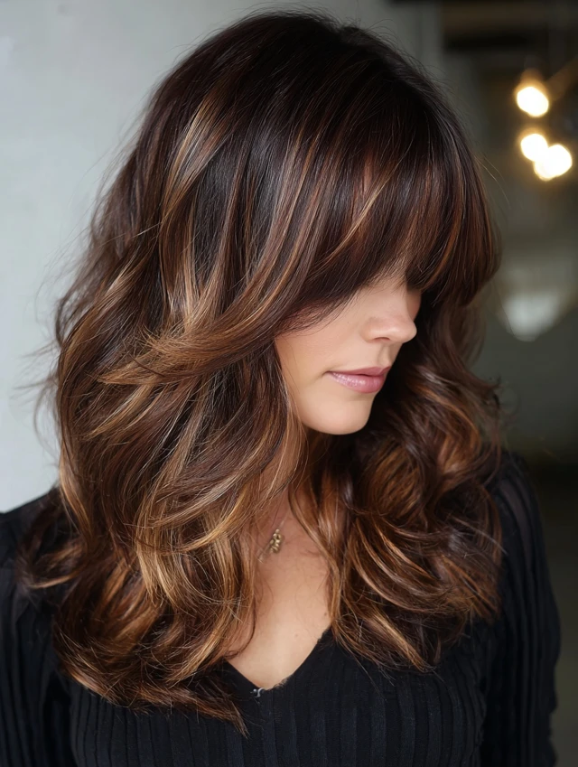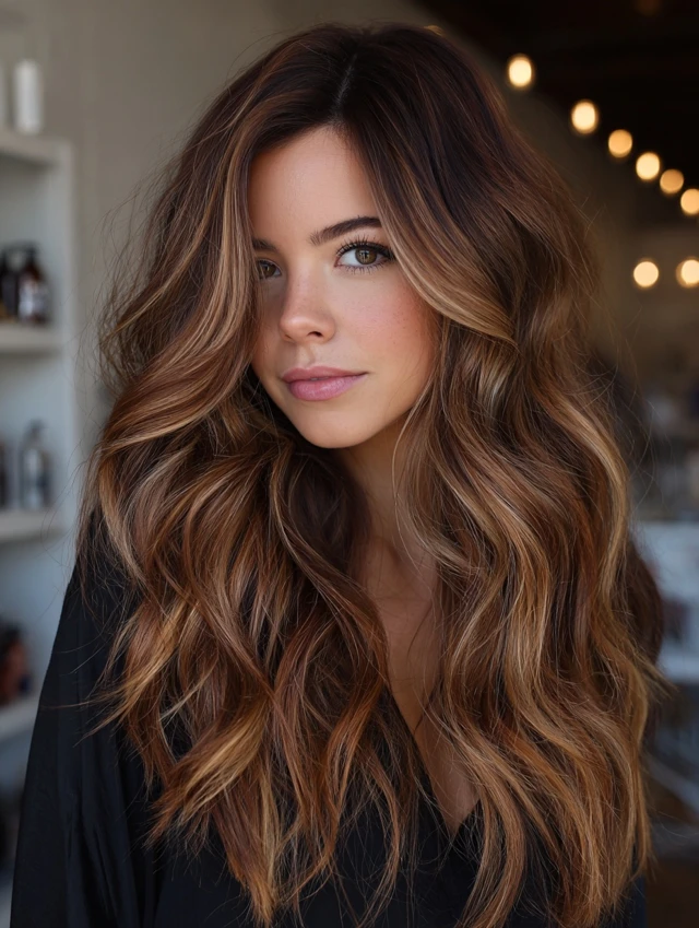 Caramel hair with brown highlights strikes the perfect balance between warmth and depth. Whether your hair is straight, wavy, or curly, this blend of caramel tones and deeper brown highlights creates a soft, dimensional look that feels natural and sophisticated.