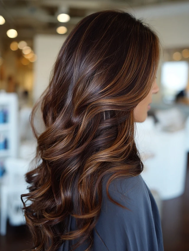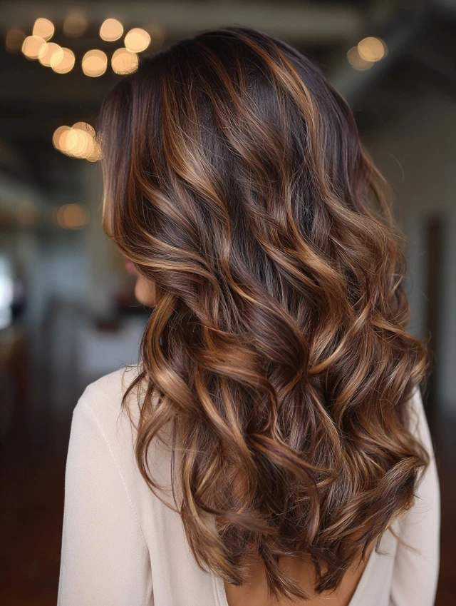 Balayage blends caramel and brown tones seamlessly for a sun-kissed effect.