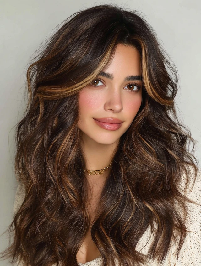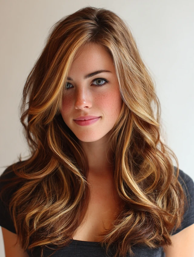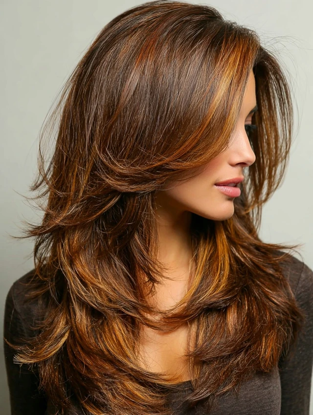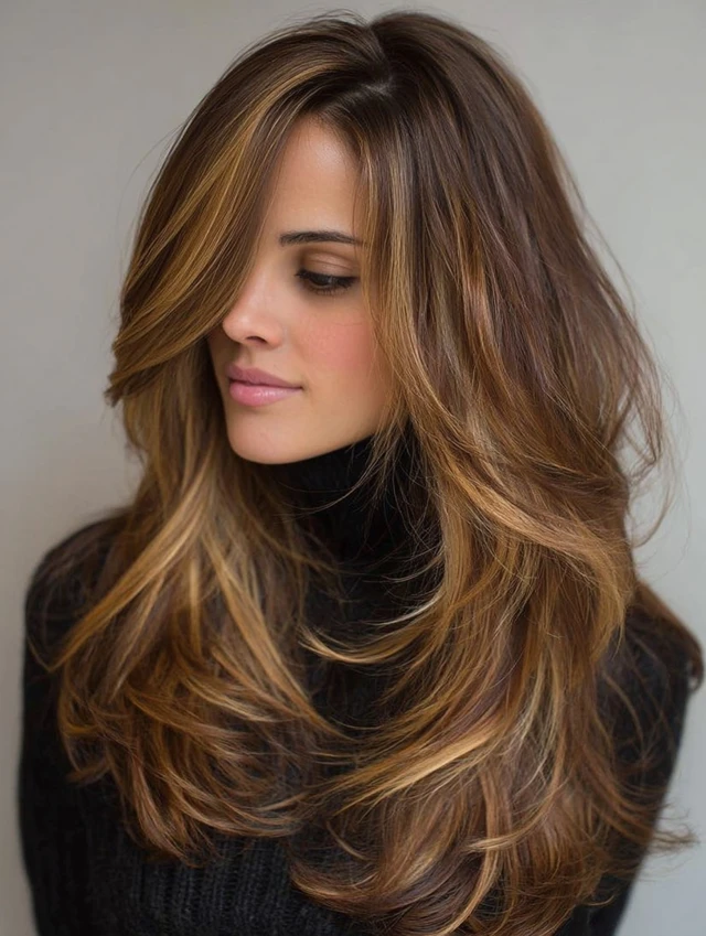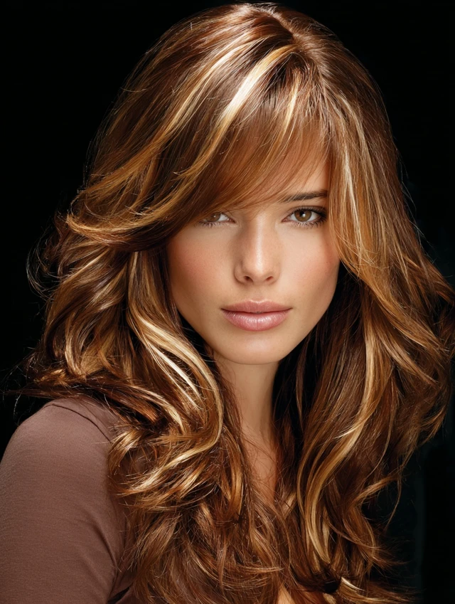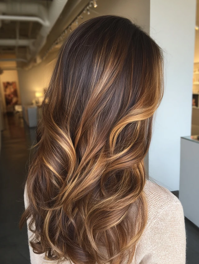 Soft highlights brighten the hair while keeping the base warm and rich.