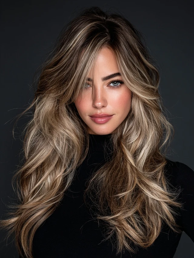 Balayage placement creates natural, sun-kissed brightness throughout the hair.