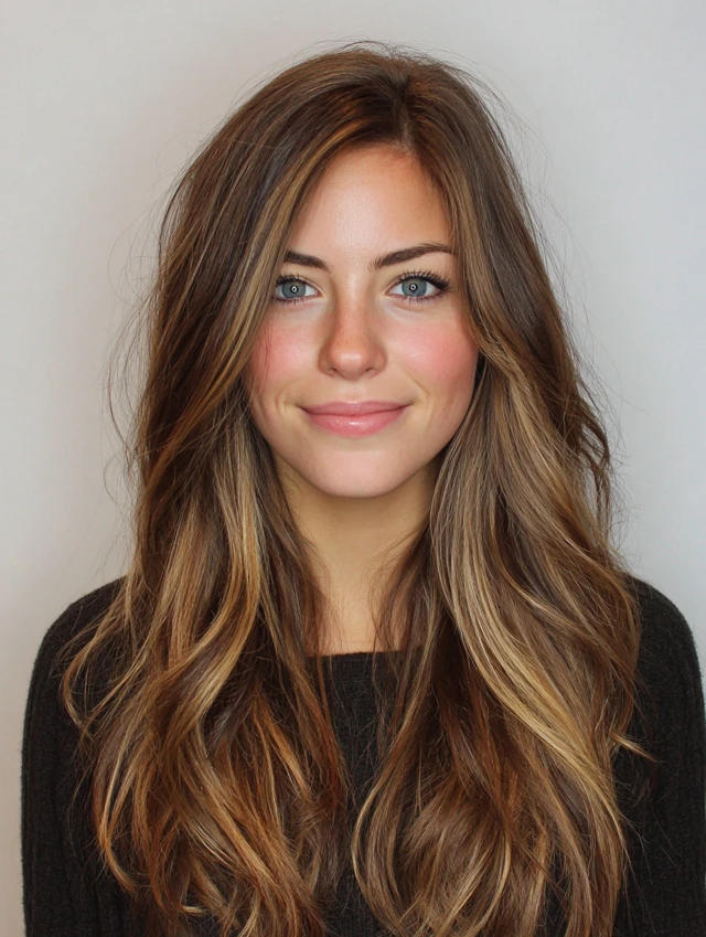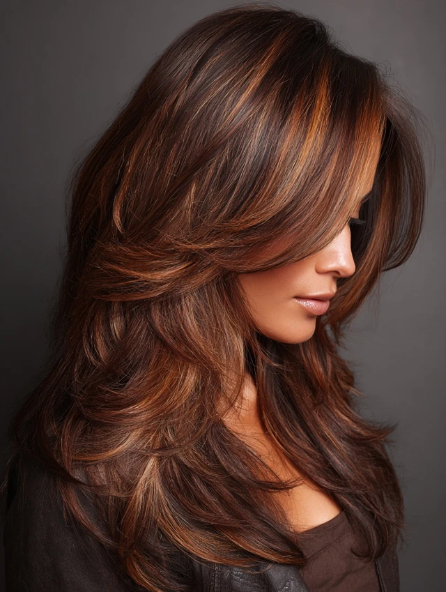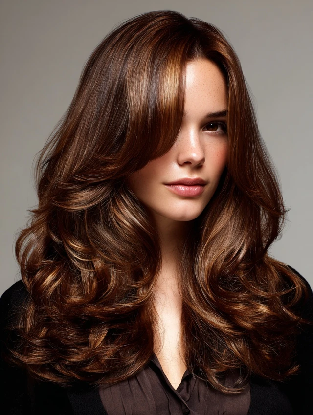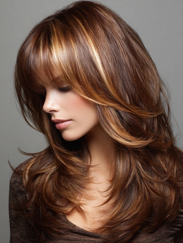Lowlights add contrast without overpowering the caramel base, making your hair look vibrant and multi-dimensional while remaining easy to style.