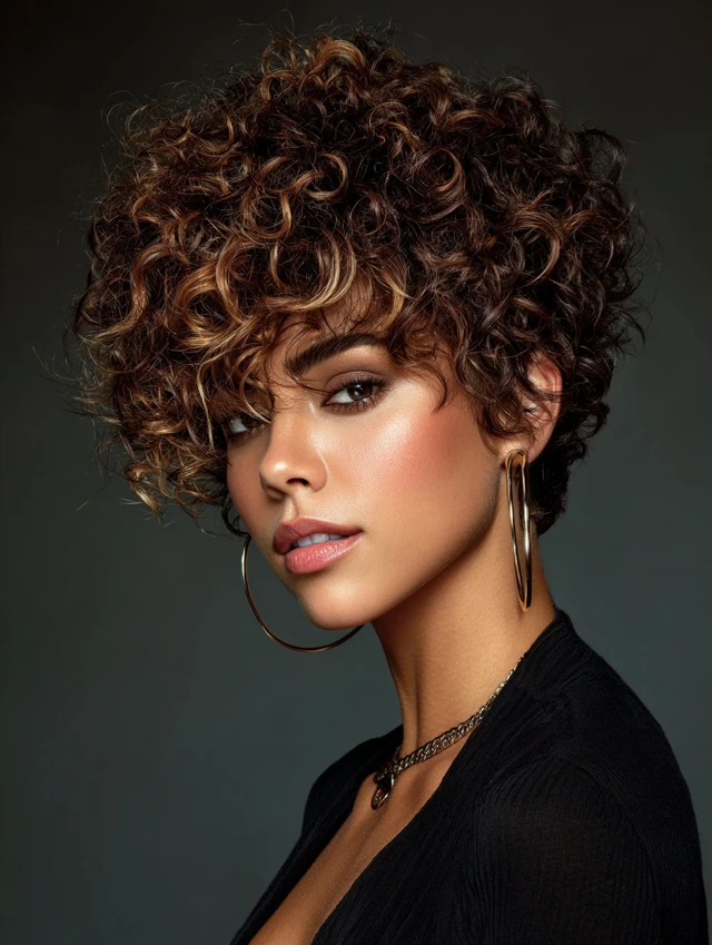 Curly hair gains shape and definition while soft layers highlight facial features.