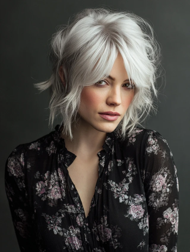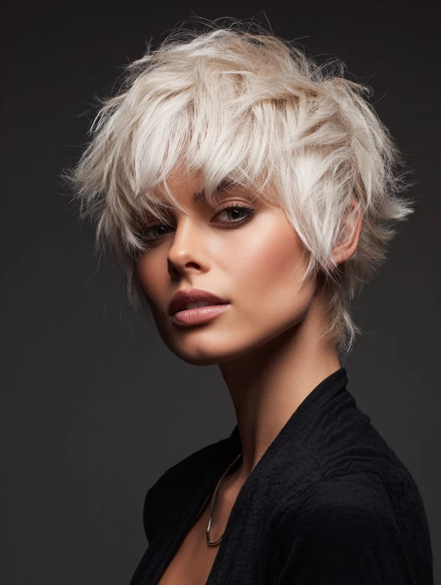 The messy bixie with a deep side part is perfect for anyone wanting short hair with volume, texture, and asymmetry. Its tousled layers create natural movement while the side part enhances facial features and adds drama.