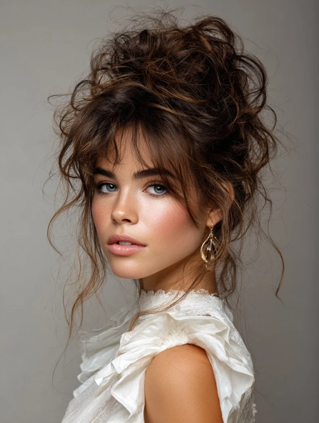 The side part frames the face beautifully, highlighting cheekbones and eyes.