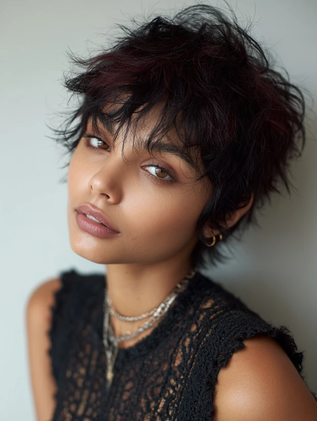 - Tousled, choppy layers for a natural, messy vibe