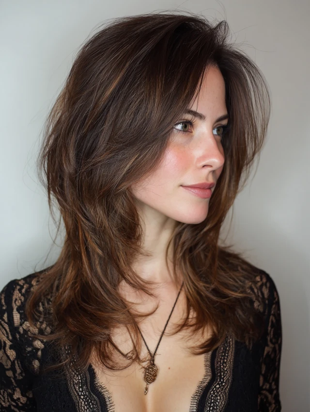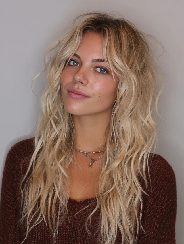 Loose waves highlight textured layers, creating fullness and a relaxed look.