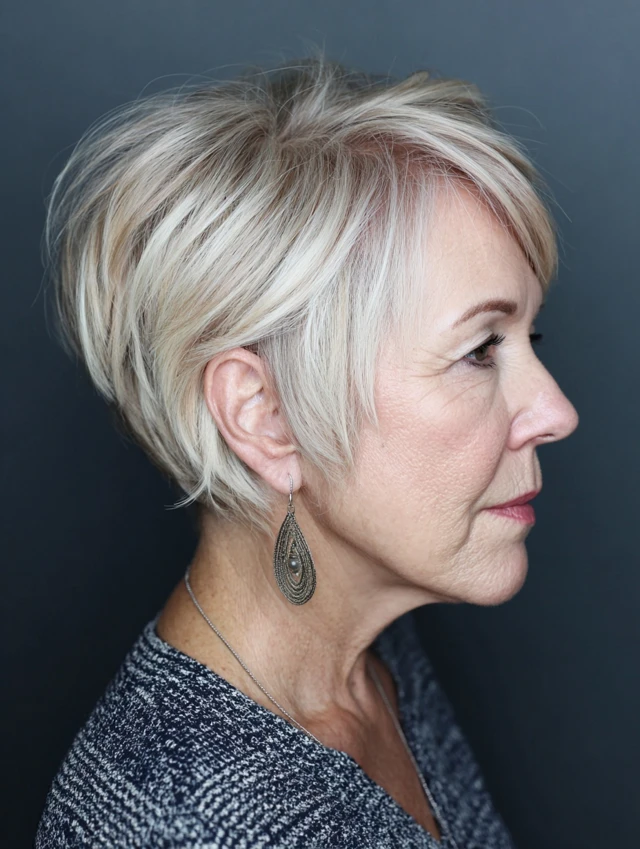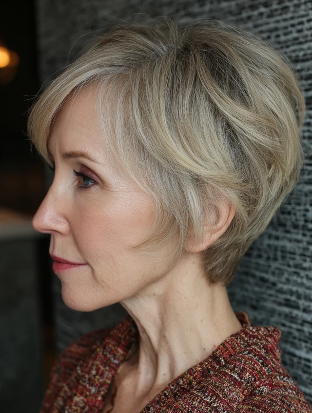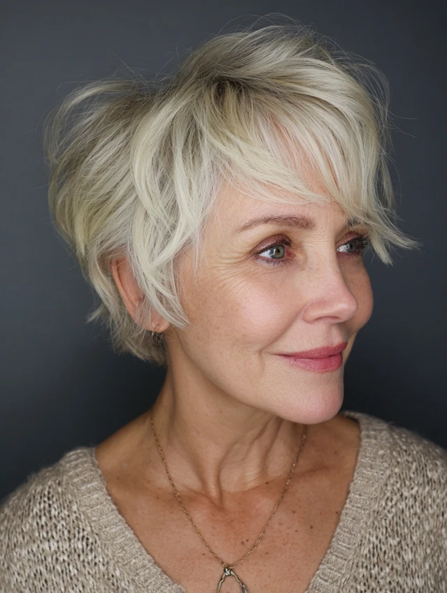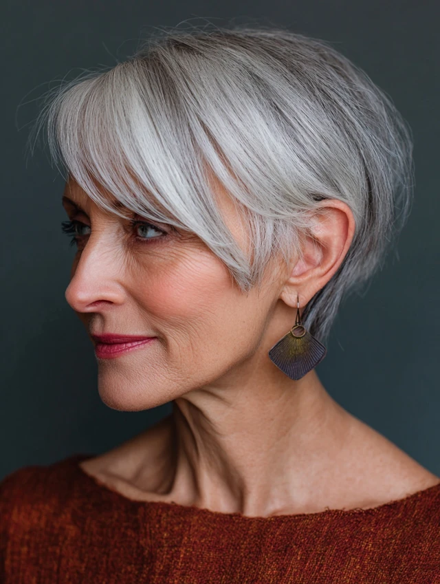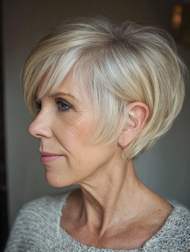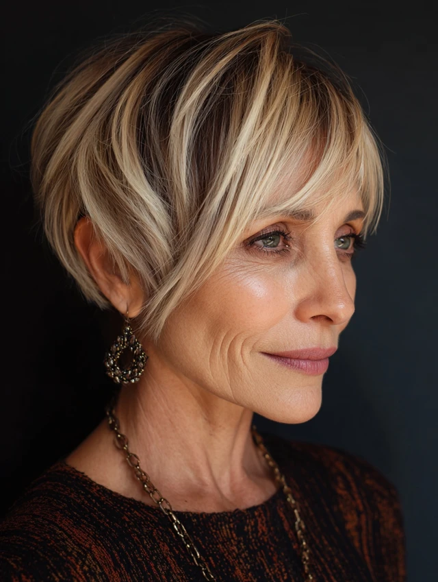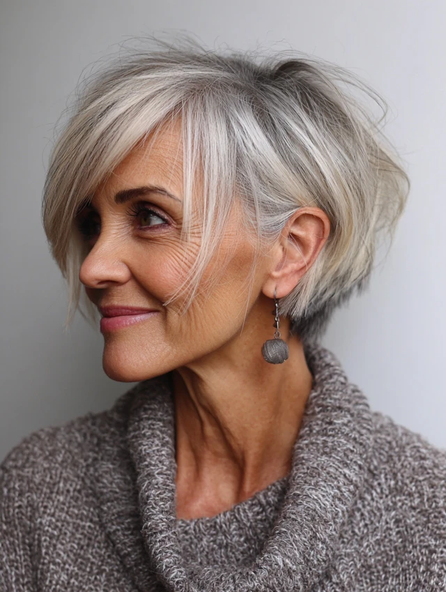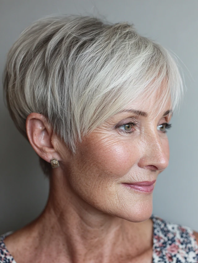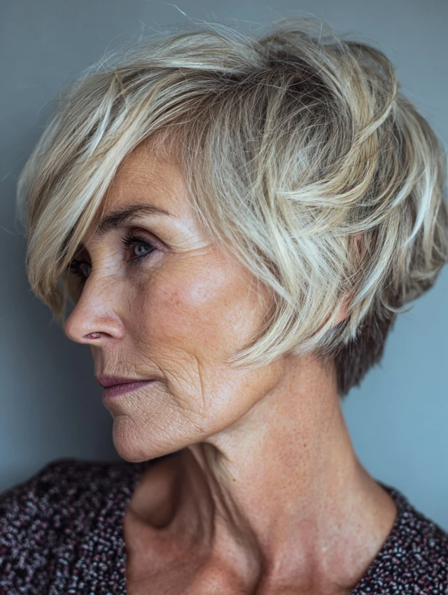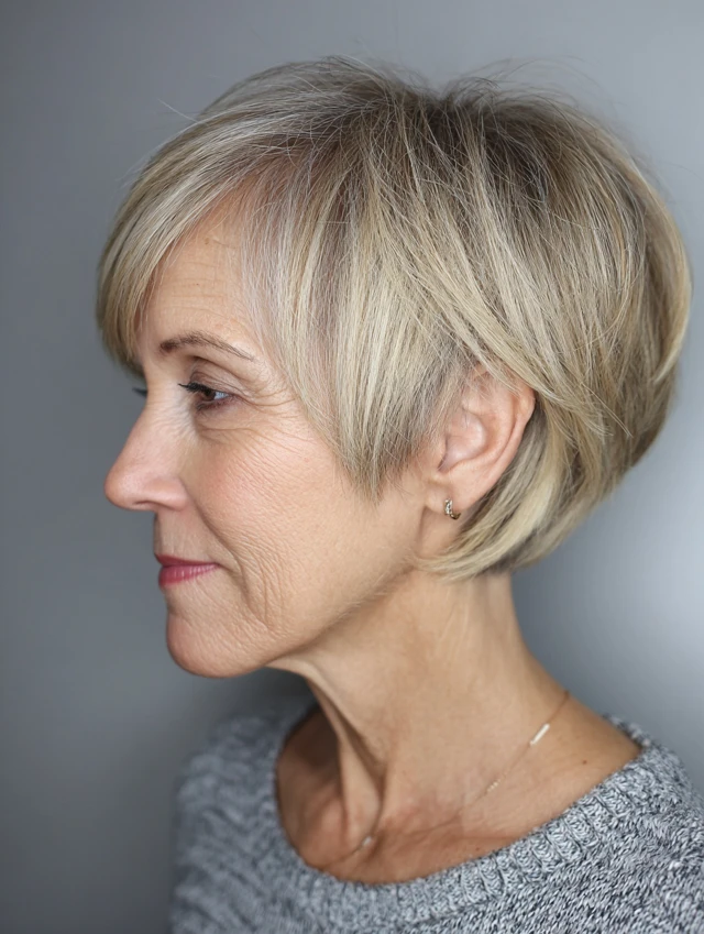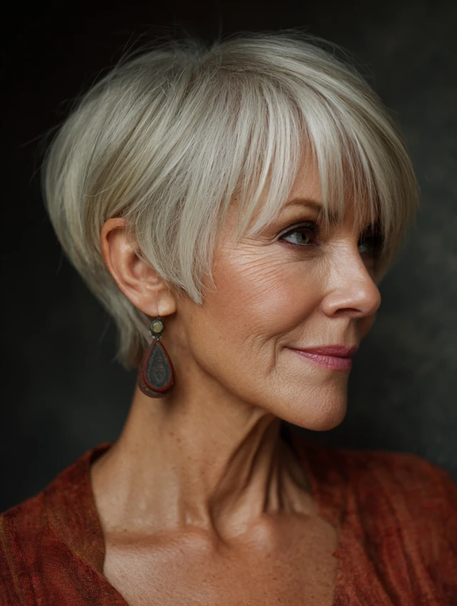 Pixie bob haircuts for older women blend the short ease of a pixie with the soft shape of a bob. The result is a flattering, lightweight style that offers both structure and movement — perfect for a polished yet low-maintenance look.