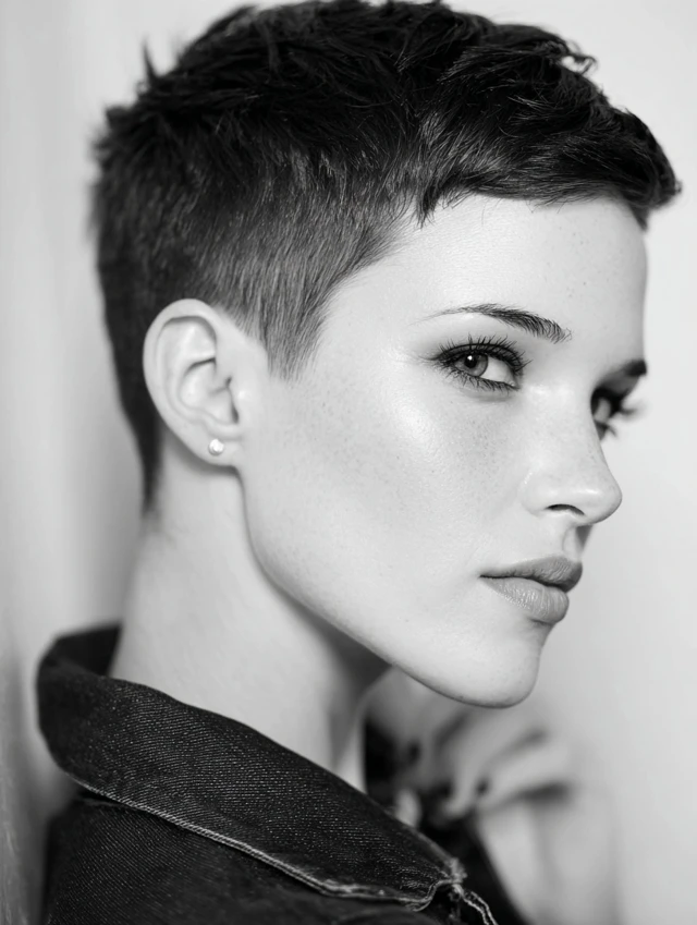 Pixie cuts with shaved sides strike the perfect balance between daring style and modern sophistication. Whether your hair is straight, wavy, or curly, this haircut combines a short pixie top with closely shaved sides for a striking, high-contrast look.