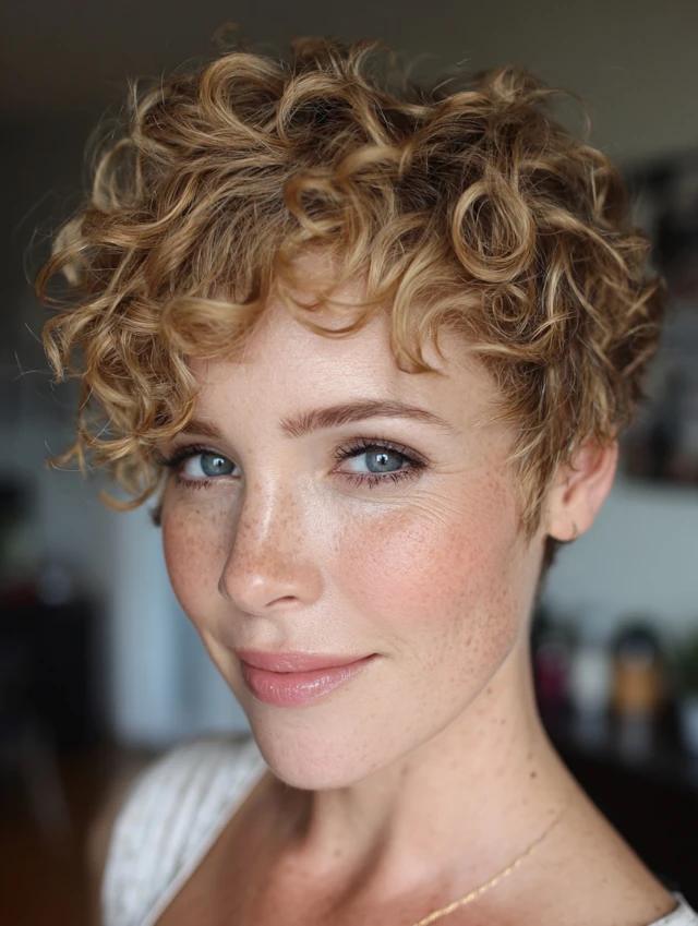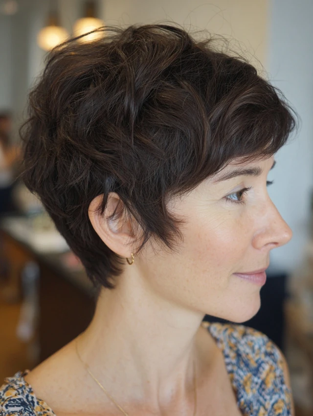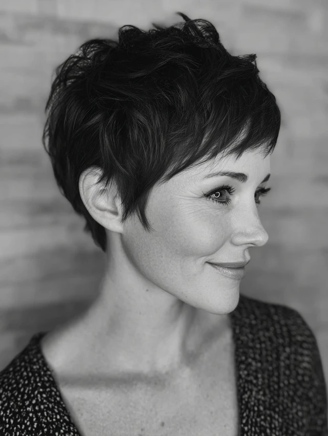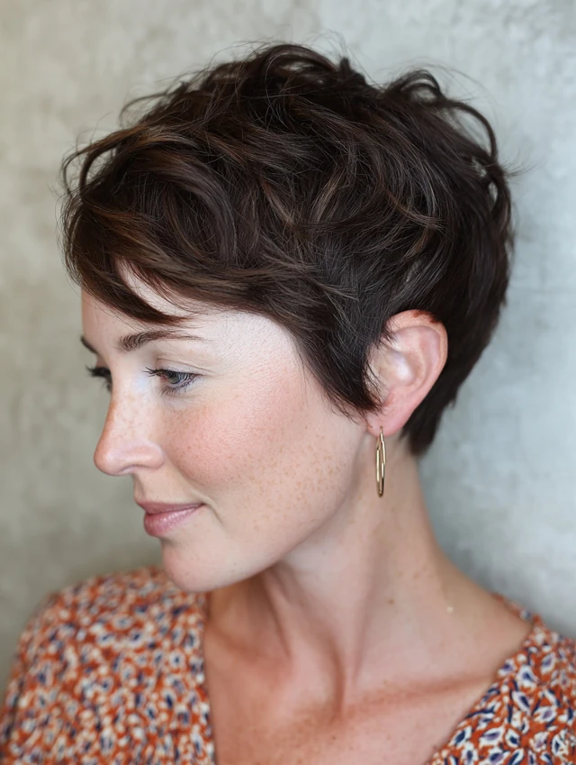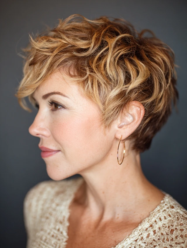 Straight, wavy, or curly hair adapts easily to a pixie cut.
