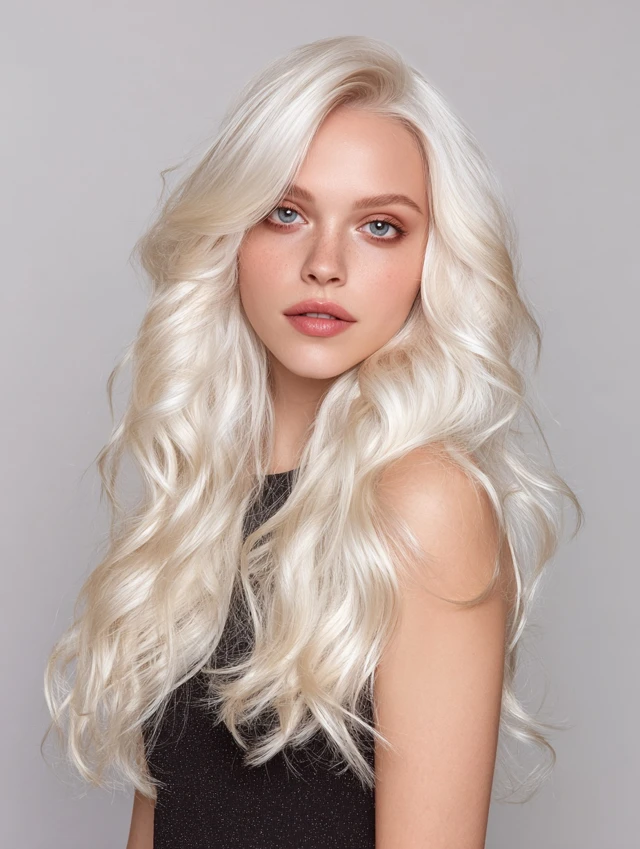 Loose waves highlight layers and add body, enhancing the icy, reflective tones of platinum.