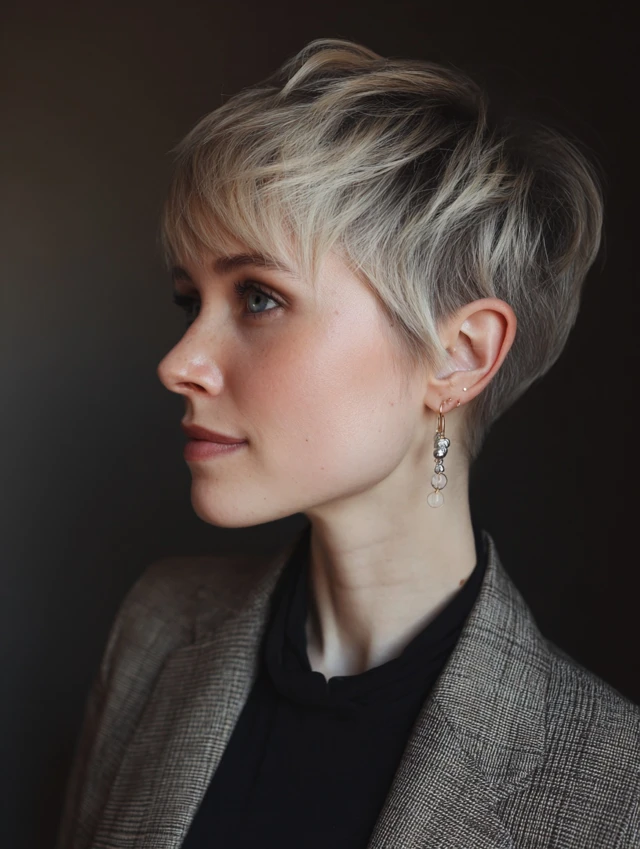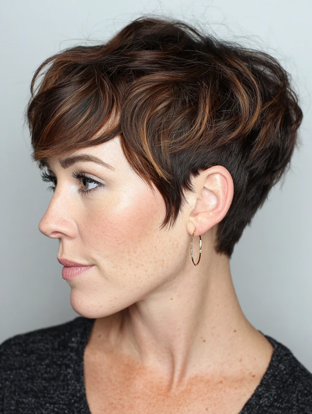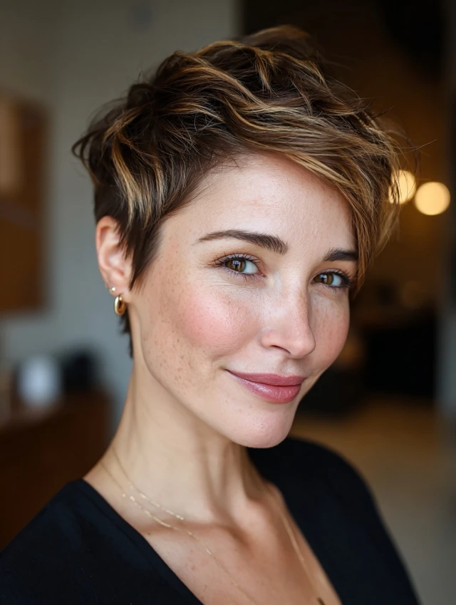 A pixie with soft highlights looks clean and stylish.