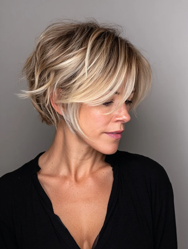 Whether you choose a bob, pixie, or layered cut, balayage adds just the right amount of dimension without overpowering your professional image.