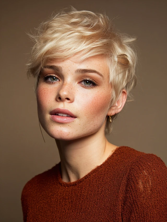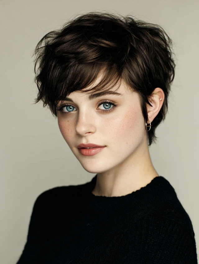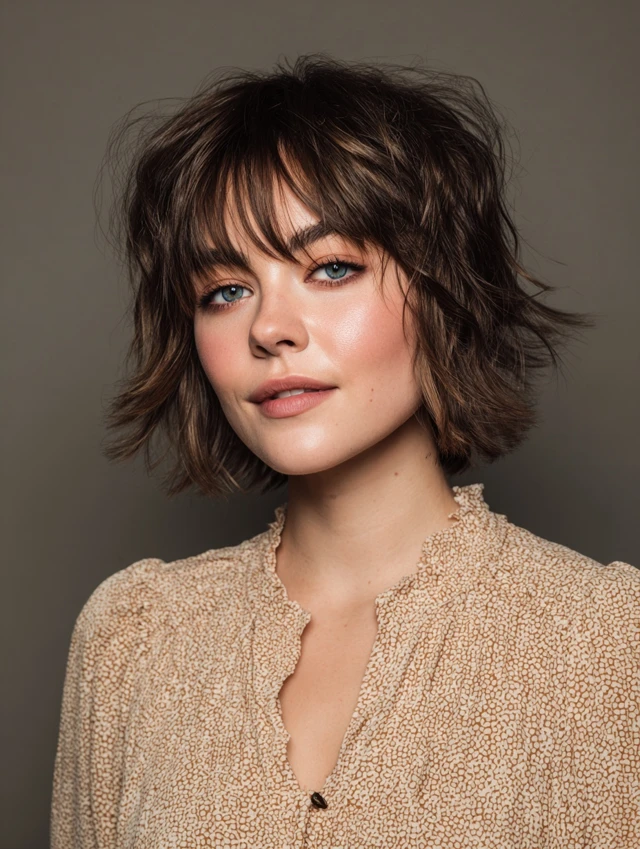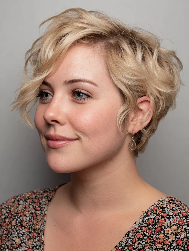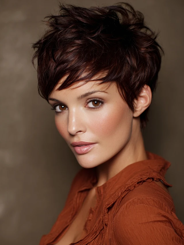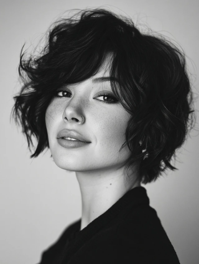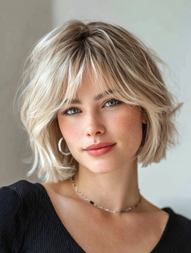 Layered bob, pixie with volume, asymmetrical bob, or textured shag.