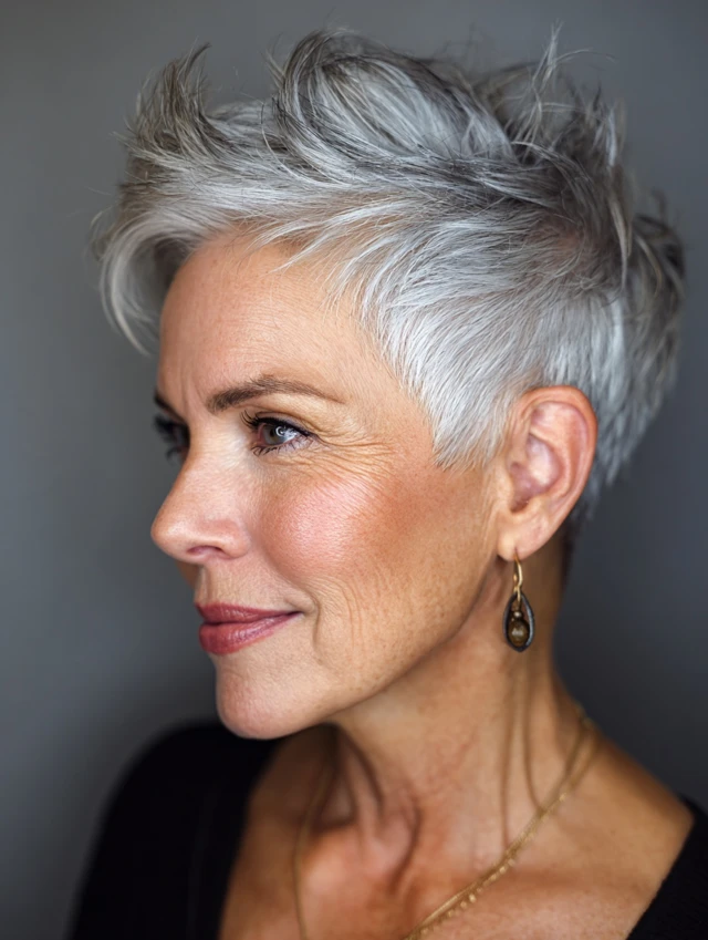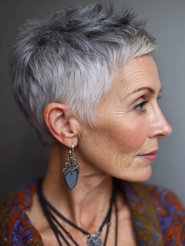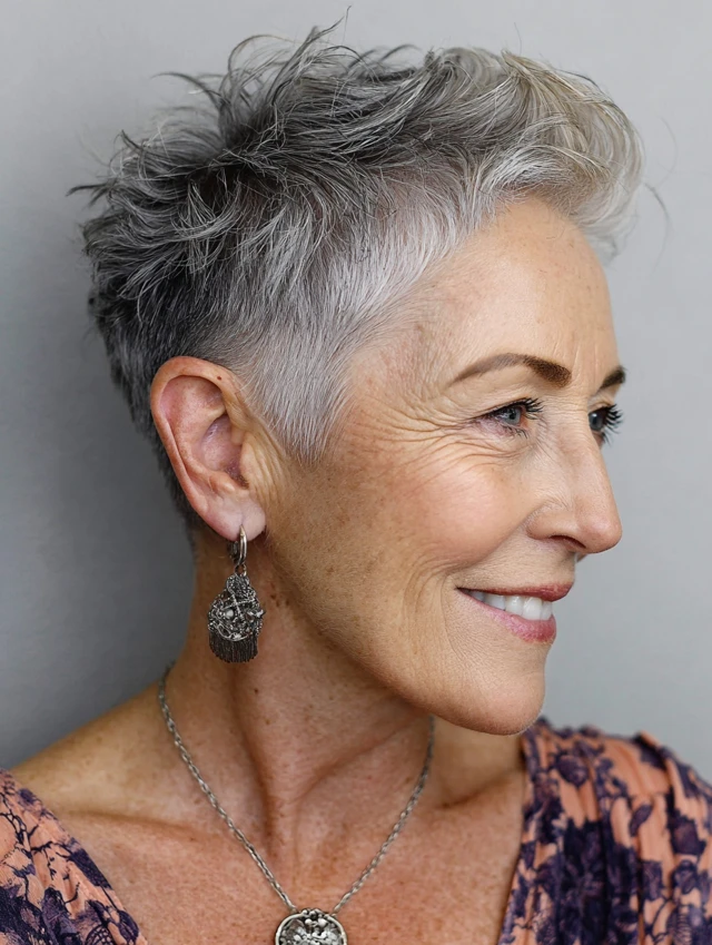 Undercut pixie haircuts for women over 50 are a powerful way to express personal style while keeping hair manageable. With a mix of soft top layers and clean, short sides, this look offers both elegance and edge.